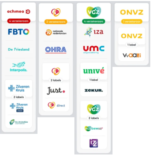 Voor Achmea, CZ en ONVZ geldt het volgende: